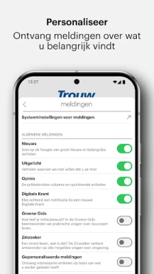 通过 Trouw,您可以轻松获取每日最新要闻,并深入探究其背后的脉络与背景。应用程序内精心设置了多个专题版块,如"深度分析"、"观点评论"、"宗教与哲学"、"可持续性与自然"以及"文化与媒体",助您精准定位感兴趣的内容。无论是想原汁原味地翻阅数字化版纸质报纸,包括《Tijdgeest》杂志,还是体验专为数字阅读优化的每日"数字特刊",Trouw 都能满足您的需求。此外,您可自定义推送通知,确保不会错过任何您认为重要的信息。